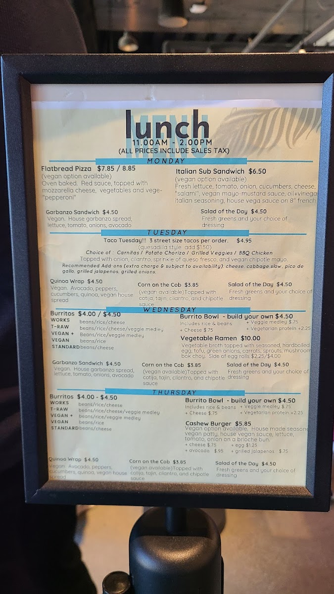 The menu features standout items like the mouthwatering burrito, loaded with rice, veggie meat, pinto beans, and cheese, delivering both taste and value. For those craving a classic, the cashew burger and BBQ "chicken" quesadilla are utterly satisfying and packed with flavor, appealing to both vegetarians and meat enthusiasts alike.